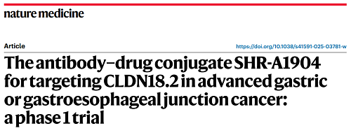 利来国际医药CLDN18.2 ADC创新药SHR-A1904治疗胃癌临床研究结果荣登Nature Medicine
